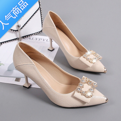 SUNTEK法式高跟鞋女2023春季新款时尚金属尖头浅口细跟单鞋礼服鞋职业鞋