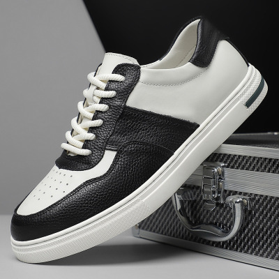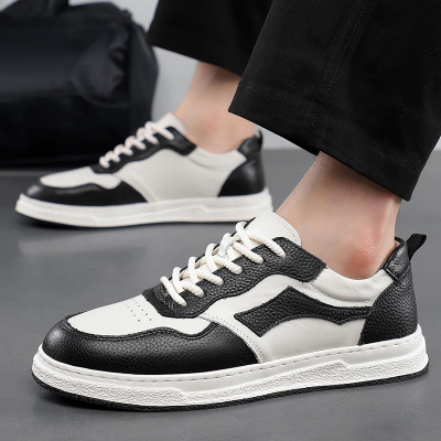 头层牛皮鞋小众百搭男士休闲熊猫鞋韩版潮小白鞋软底个性厚底男板