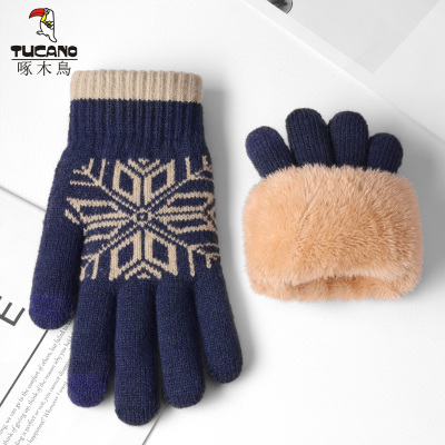 啄木鸟手套男2024冬季加绒加厚针织毛线保暖触屏防风防寒骑行手套