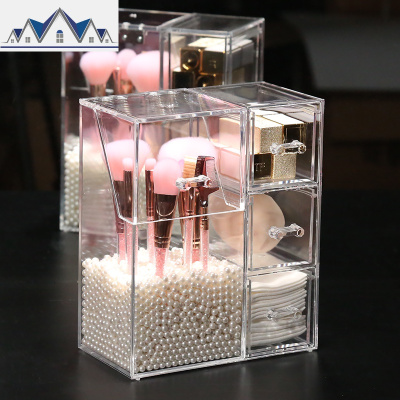 三维工匠透明防尘化妆刷收纳筒桌面置物架子化妆品收纳盒亚克力珍珠刷具桶