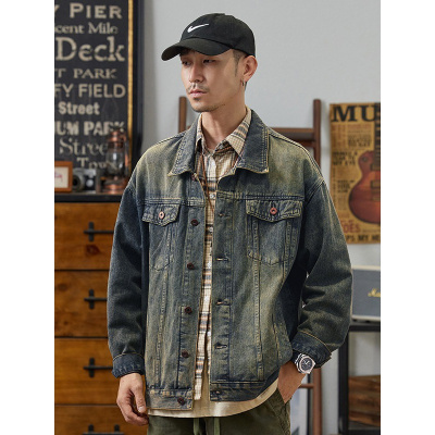 男装复古潮牌水洗宽松牛仔外套春秋新款美式休闲宽松牛仔夹克外套