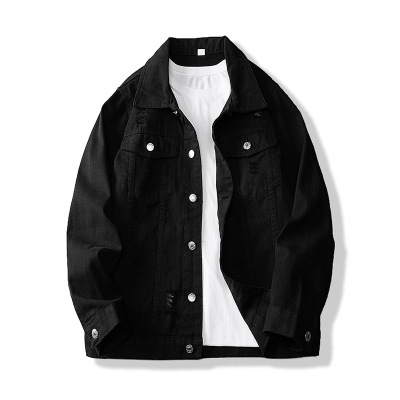 YANXU新款修身破洞牛仔外套男士牛仔褂上衣翻领夹克复古牛仔服