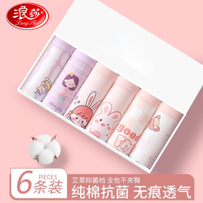 浪莎儿童内裤女童女孩三角内裤a类棉质短裤学生宝宝四季内裤6条装 6条-爱心草莓 170 建议体重80-90斤