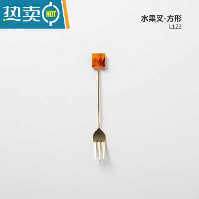 敬平简约创意琥珀色几何装饰不锈钢家用水果叉子咖啡勺搅拌棒 水果叉(方形)牙签