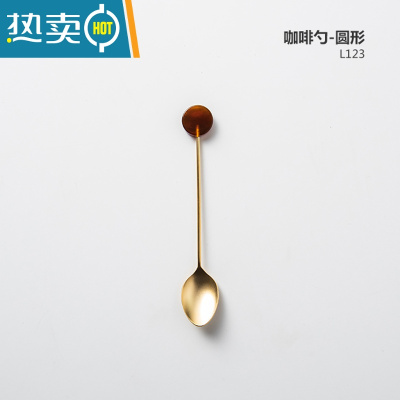 敬平简约创意琥珀色几何装饰不锈钢家用水果叉子咖啡勺搅拌棒 咖啡勺(圆形)牙签