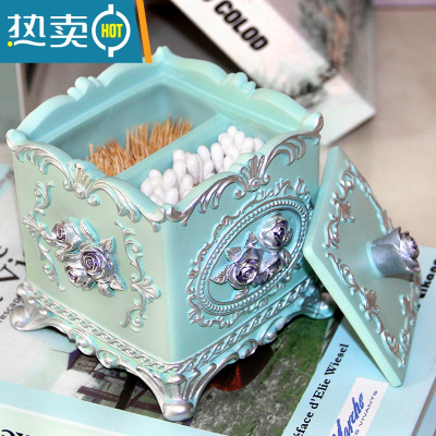 敬平牙签盒家用手压式牙签筒轻奢创意便携式简约收纳盒棉签盒收纳 褐色 方形天蓝色二合一