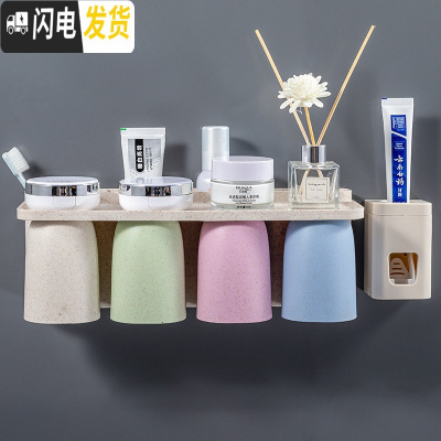 三维工匠免打孔牙刷牙膏置物架壁挂式卫生间洗漱套装组合家庭放刷牙杯子的 二口之家+挤牙膏器(赚钱的管钱的)牙具座