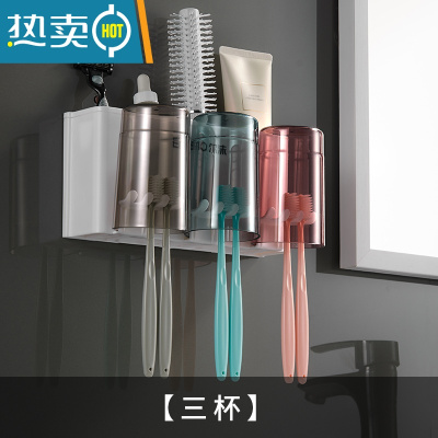 三维工匠免打孔牙刷牙膏置物架壁挂式卫生间洗漱套装组合家庭放刷牙杯子的 三口之家+挤牙膏器(爸爸妈妈女儿)牙刷架/牙具座