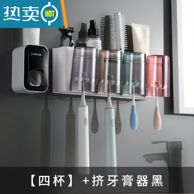 敬平壁挂电动牙刷置物架免打孔漱口杯刷牙杯挂墙式卫生间收纳盒套装 四杯牙刷架+挤牙膏器(黑)浴室置物架