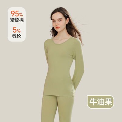 A类100%全棉秋衣秋裤套装纯棉保暖内衣女圆中领抗静电打底棉毛衫
