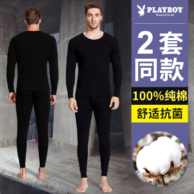 花花公子男士保暖内衣男秋衣秋裤纯棉套装薄款全棉毛衫大码打底衫