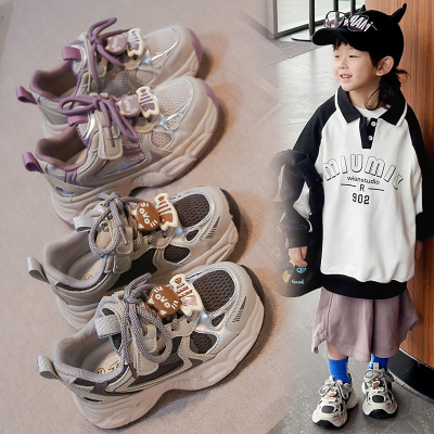 春秋女童运动鞋网面透气韩版洋气老爹鞋男童中大童学生跑步鞋
