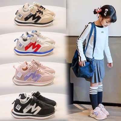 女童运动鞋皮面春秋新款儿童老爹鞋男童休闲鞋学生轻便跑步鞋