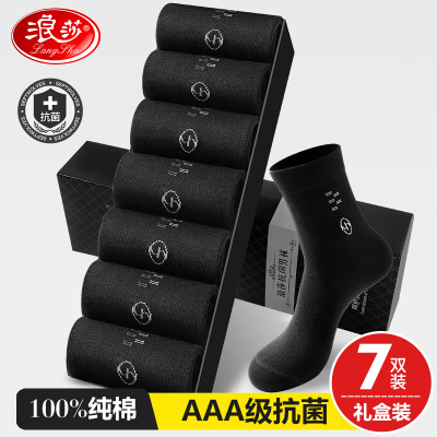 浪莎男士袜子纯棉防臭吸汗春秋款中筒全棉黑色袜子男长袜
