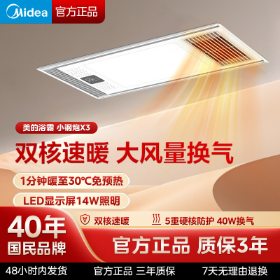 美的浴霸风暖排气扇照明一体卫生间取暖器明排气扇一体集成吊顶卫生间排风扇风暖取暖灯电暖风扇X3机械款