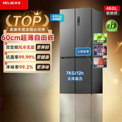 美菱收纳师冰箱460升十字对开双开四开门多门家用大容量60cm超薄嵌入一级能效风冷无霜BCD-460WP9CX典雅灰