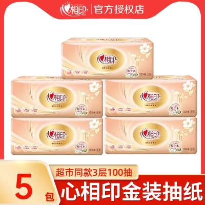 心相印金装抽纸100抽5包3层纸巾整箱家庭实惠装面巾纸擦手纸餐巾纸