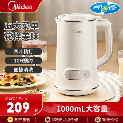 美的(Midea)豆浆机DJ10B-P703小型免煮免滤辅食机1L容量2-4人一键清洗多功能料理破壁机豆浆机