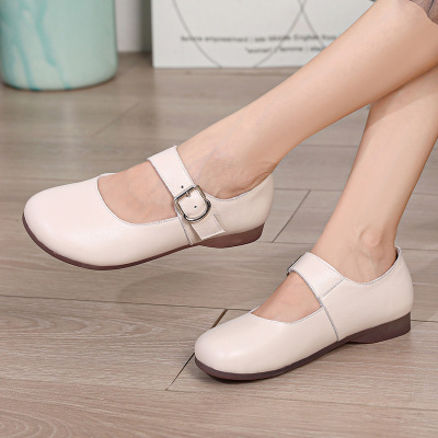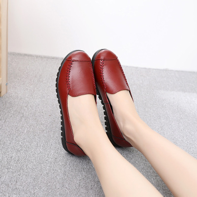 新款休闲单鞋轻便软底妈妈鞋头层牛皮平底鞋