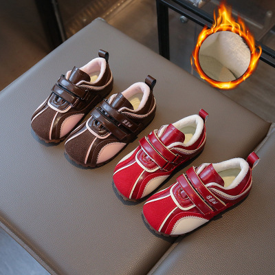 女童平底德训鞋潮流红色复古秋冬新款百搭软底儿童加绒休闲鞋