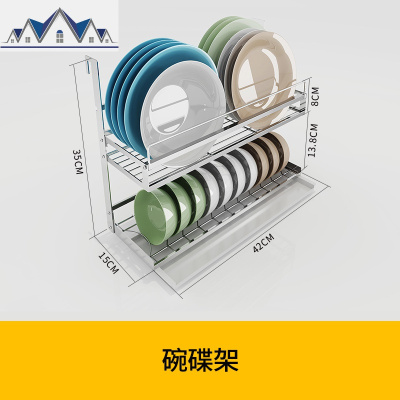 304不锈钢厨房置物架壁挂式调味料架碗碟收纳架挂架盘子挂件套餐 三维工匠