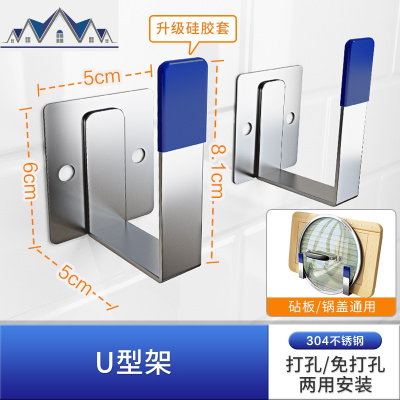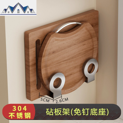 304不锈钢厨房置物架免打孔壁挂刀砧板锅盖挂杆碗碟调味料收纳架 三维工匠