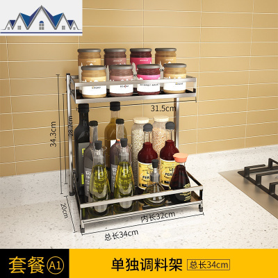304不锈钢调料架厨房置物架多层桌面省空间调味品收纳家用酱油瓶 三维工匠