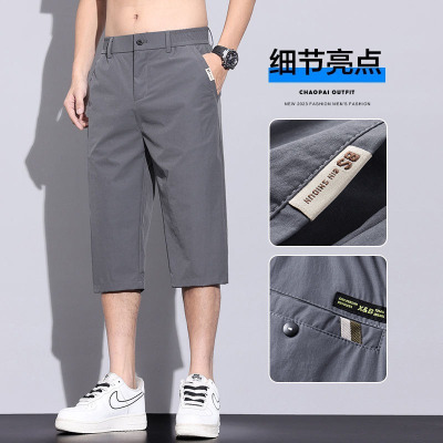 冰丝七分裤男士夏季韩版微弹商务风休闲短裤