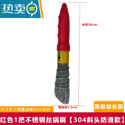 敬平304不锈钢丝锅刷家用食堂饭店餐厅铁锅专用锅刷厨房灶台柔软无 1把红色[加长版锅刷304斜头]刷子
