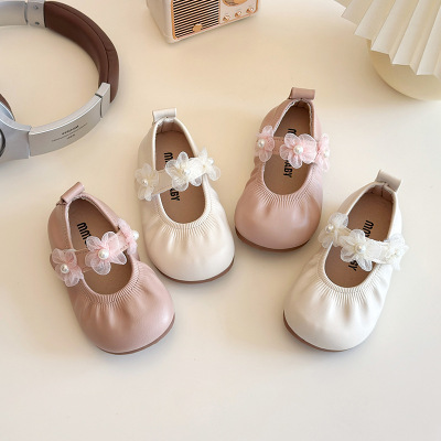 儿童皮鞋2026年春季新款蝴蝶结珍珠女童公主鞋时尚女宝宝单鞋