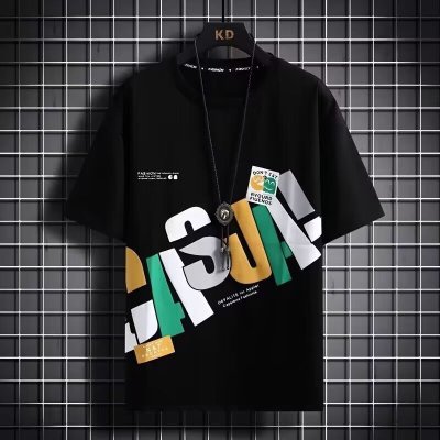 夏季新款男士短袖T恤潮流港风时尚ins百搭印花圆领套头半袖男
