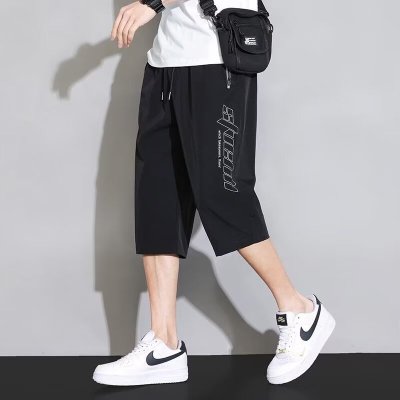 七分裤冰丝裤男士韩版大码时尚潮流休闭个性印花短裤