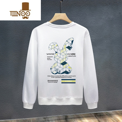 YANXU潮牌圆领卫衣男士新款网红兔子印花时尚宽松百搭长袖男外套