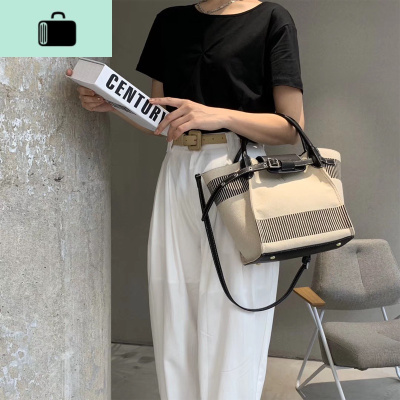 2020新款女包时尚条纹帆布手提包斜跨 大容量百搭托特包大购物袋NEW LAKE 条纹撞色