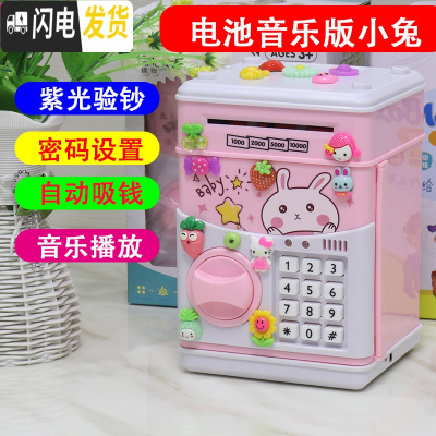 三维工匠创意可爱儿童防摔电动密码箱指纹卡通网红存钱储蓄罐男孩女孩公主 电池音乐小兔