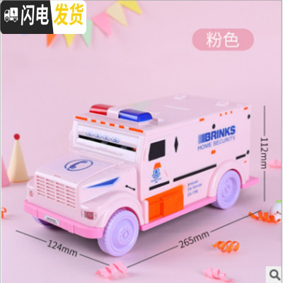 三维工匠抖音网红运钞车存钱罐不可取大容量儿童创意悍马汽车储蓄密码箱男 电池自动卷钱密码指纹存钱罐(粉存钱九大功能储蓄罐