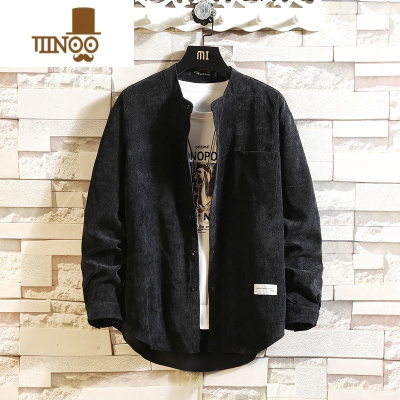 YANXU休闲衬衫男长袖潮牌宽松休闲立领衬衣日系大码复古灯芯绒外套