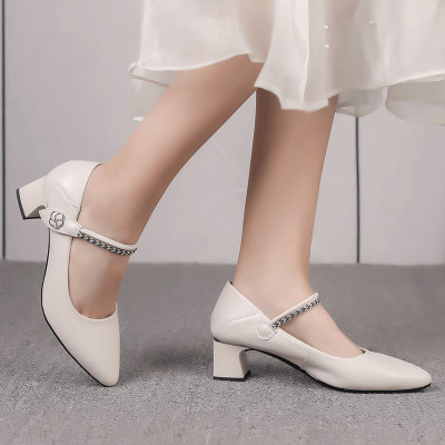 新款女鞋方头粗跟中跟时装鞋中跟鞋韩版单鞋复古英伦风小皮鞋