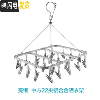 三维工匠铝合金不锈钢多夹子内衣晾衣架晒袜子衣服功能挂钩晾晒架家用 加粗银色晾晒架中方22银夹 1个