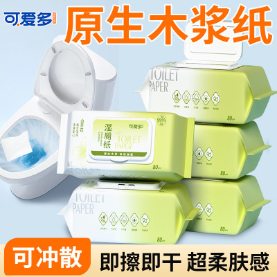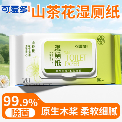 可爱多山茶花精华卫生湿厕纸80片盖巾湿擦轻柔免水洗80抽