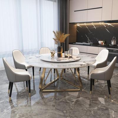轻奢北欧大理石餐桌椅组合后现代简约圆桌饭桌家用圆形不锈钢餐桌