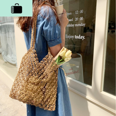 ins夏季风新款手工纸绳编织渔网兜镂空单肩包休闲沙滩女包编包NEW LAKE女士单肩包