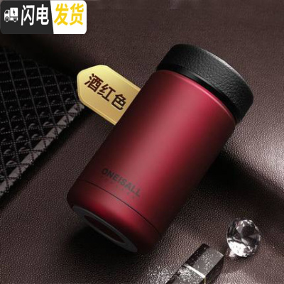 三维工匠小型保温杯男士便携水杯创意个性潮流大肚泡茶304不锈钢杯子 酒红色