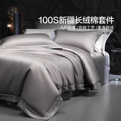 水星家纺高端100支长绒棉四件套轻奢贡缎织造柔滑酒店家用套件