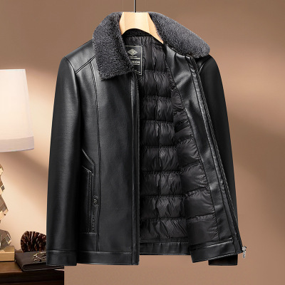 中年爸爸皮衣男翻毛领加绒加厚皮夹克秋冬季中老年保暖冬装外套