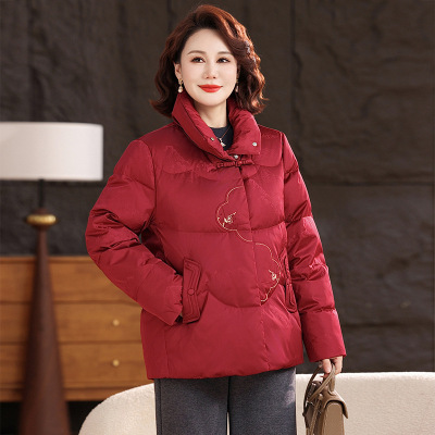 冬新款女士中式羽绒服典雅盘扣刺绣国风中老年妈妈装90白鸭绒