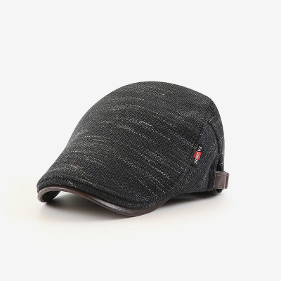 秋冬季男女士鸭舌帽针织加绒摇粒绒中年帽子保暖拼接PU时尚前进帽