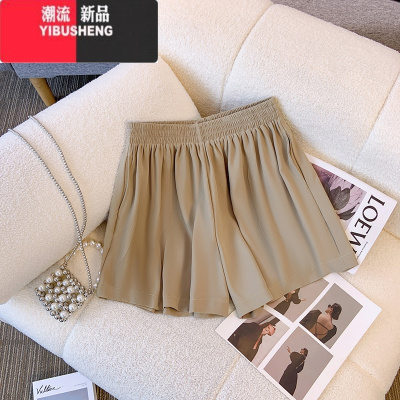 YIBUSHENG卡其色松紧腰短裤女天显瘦休闲裤2024新款高腰小个子外穿a字裤