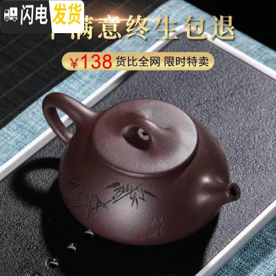 三维工匠宜兴紫砂壶纯手工原矿名家全手工套装过滤泡茶壶茶具老紫泥汉扁壶 [3月8日发货]紫泥球孔款