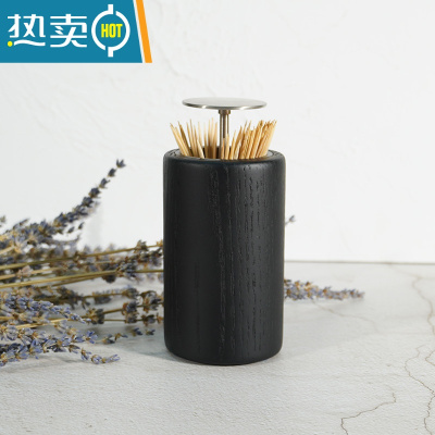 敬平实木牙签盒自动按压式轻奢家用个性创意大理石牙签桶 黑色水曲柳
